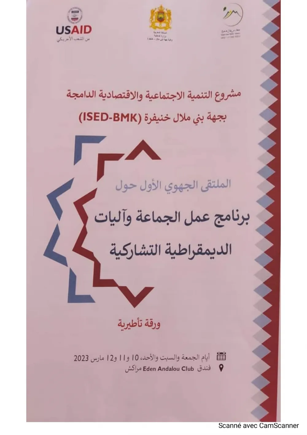 حضر السيد بدر الدين ناجح فوزي رئيس المجلس الجماعي لأزيلال ومجموعة جماعات الأطلسين الكبير والمتوسط أشغال الملتقى الجهوي الأول حول برنامج عمل الجماعة وآليات الديمقراطية التشاركية الذي تحتضنه مدينة مراكش من 10 إلى 12 مارس 2023 من تنظيم مشروع التنمية الاجتماعية والاقتصادية الدامجة بجهة بني ملال خنيفرة، ( ISED-BMK) و وزارة الداخلية والممول من طرف الوكالة الأمريكية للتنمية الدولية ( USAID). ...