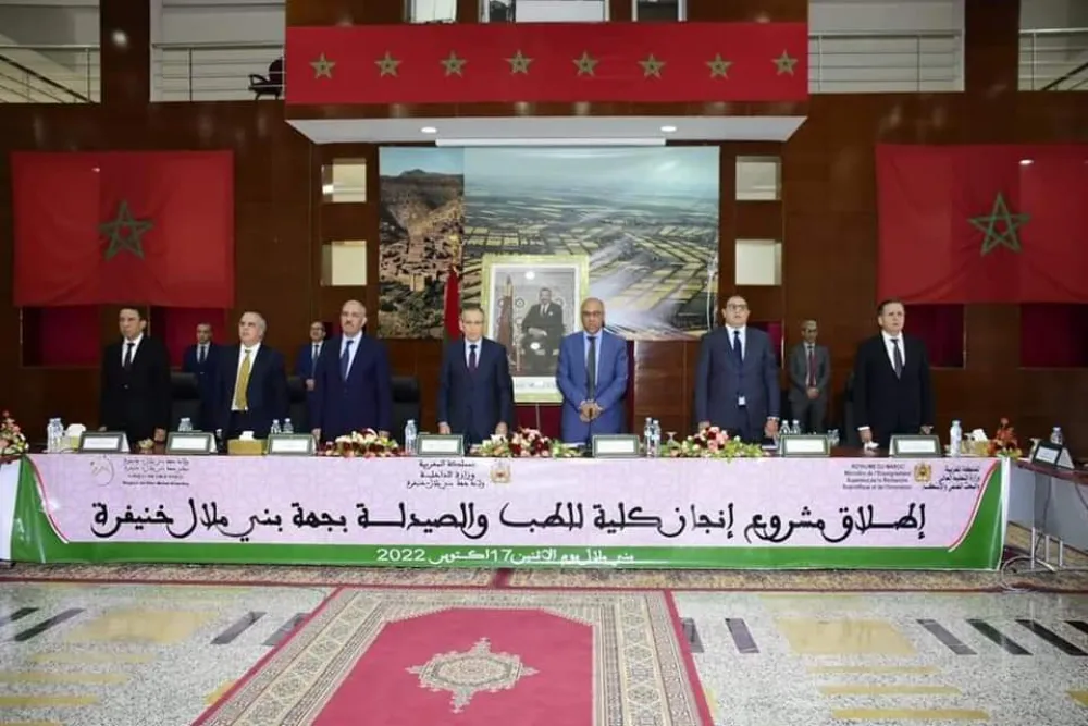 حضور السيد بدر الدين ناجح فوزي رئيس المجلس الجماعي لأزيلال ومجموعة جماعات الأطلسين الكبير والمتوسط، حفل إعطاء الانطلاقة الرسمية لانجاز مشروع كلية الطب و الصيدلة بجهة بني ملال خنيفرة.