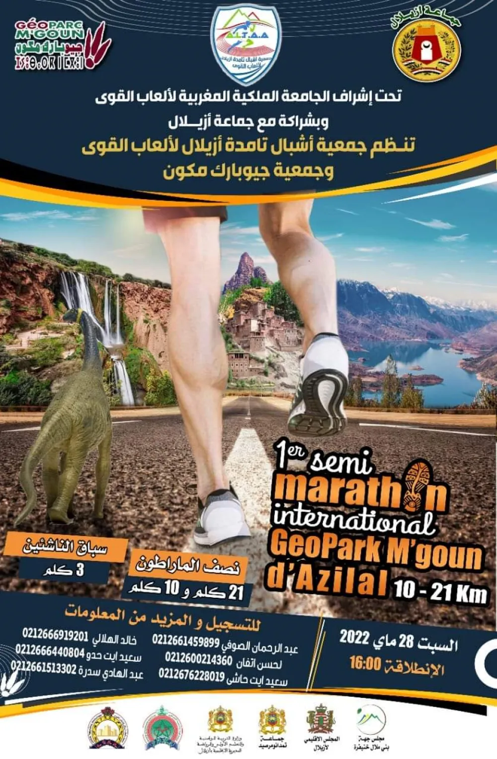 بشراكة مع المجلس الجماعي لأزيلال وتحت إشراف الجامعة الملكية المغربية لألعاب القوى تنظم جمعية أشبال تامدة أزيلال لألعاب القوى وجمعية جيوبارك مكون النصف الماراطون الأول الدولي جيوبارك مكون لأزيلال وذلك يوم السبت 28 ماي على الساعة الرابعة مساء بمدينة أزيلال. ...
