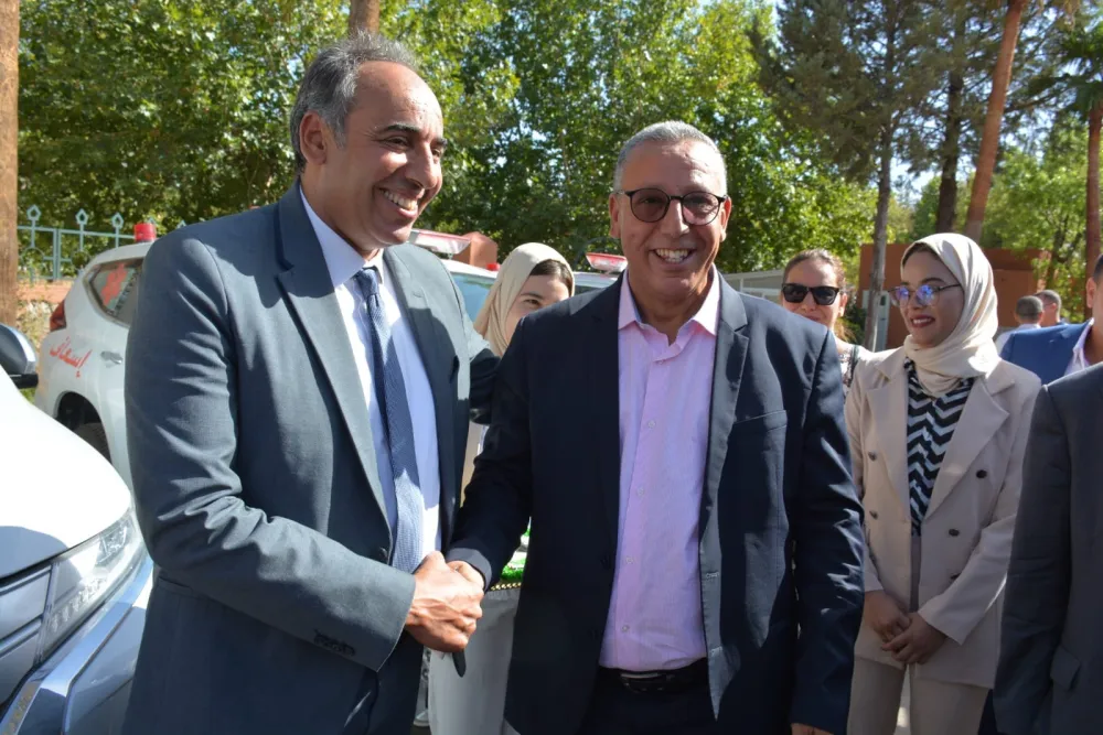 حضور السيد الوهابي سعيد النائب الأول لرئيس المجلس الجماعي لأزيلال مراسيم حفل تسليم مفاتيح سيارات إسعاف وحافلات للنقل المدرسي